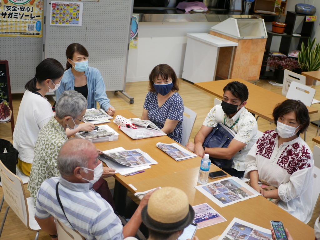 魅力発信チームでは、オンラインツアーとまちまーいを2本柱として、自分たちもガイドになって案内出来るようにしたり、ドローンによる海上撮影で疑似船上ツアーが出来るようにしたいという案が出ました。また、上がり太陽プランへの申請を検討しており、それに向けての話し合いを深めていました。環境チームは、ゴミをなくす、リサイクルする、ゴミ収集車の情報を発信するなど、ゴミ問題に関心を持ってもらえるような活動になりそうです。交流チームでは、ゆんたく会にプラスして、音楽や踊りなどもかけ合わせたりすることが出来ないかとアイディアが広がっていました。アートチームは、具体的な活動はまだ決まっていませんが、他のチームとも協力したり、色々と組み合わせられそうだという声があがりました。