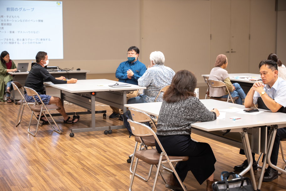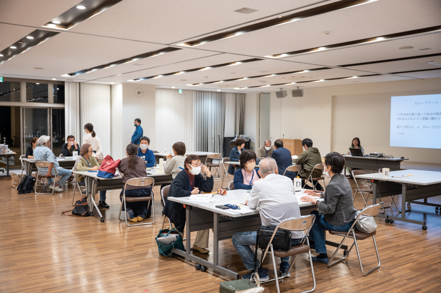 ①のワークでは、今後自分がどのように講座や活動に関わっていくのかをきちんと意識して2年次に臨んで欲しいという意図がありました。②では、前回とは違うグループを選んだ方もいましたが、前回と引き続き同じグループで話をして、活動の方向性をつかんだところもありました。また、まだどのように活動していけばいいか分からない、グループではなく個人の活動になってしまいがちだという方に向けた相談もおこないました。