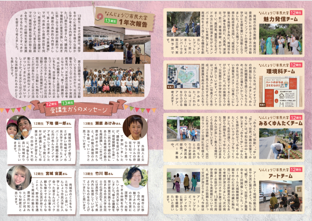 今回のなんサポニュースには、12 期生と13期生の活動内容が掲載されています。