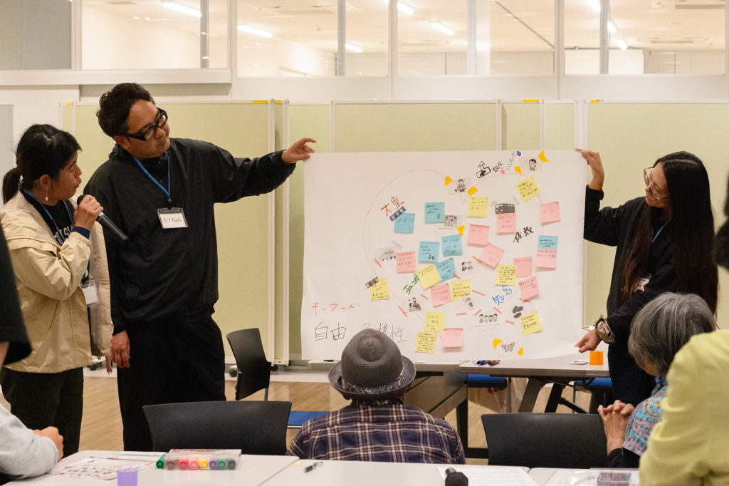 続いて、各自のアイデアをチーム内で共有。似ている視点や共通するキーワードを見つけたり、「そんな考え方もあるんだ」と新しい気づきを得たりと、対話を通じてアイデアが膨らんでいきました。