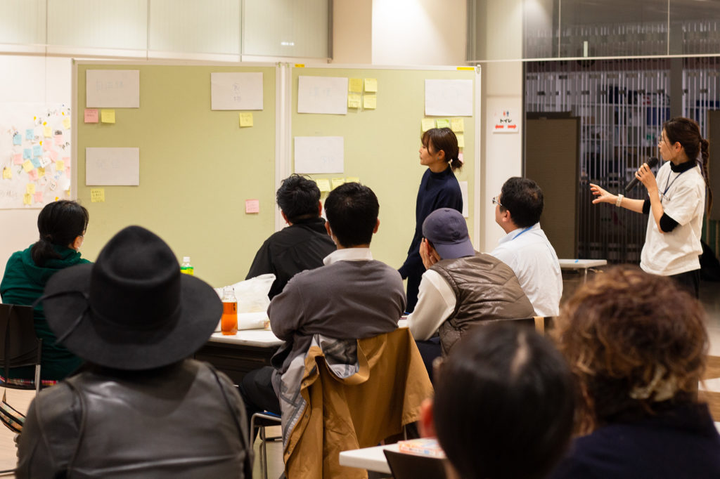 発表に先立ち、受講生には「やってみたいこと」を付箋に書き出してもらい、パネルを使って事務局で整理を行いました。