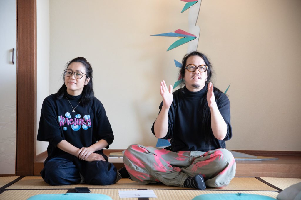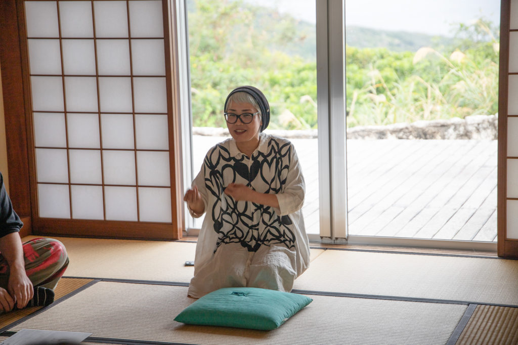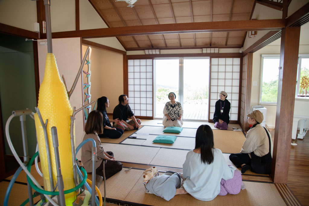 その後、キュレーターの内間さんによる作品解説を展示室内で実施。作品の背景や制作のきっかけ、作家のストーリーを聞いたあとに再び作品を見ることで、「見方が変わった」「より深く理解できた」という感想もありました。