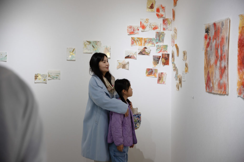 はじめにそれぞれが自由に展示を鑑賞。その後、一度集まり自己紹介を兼ねながら、印象に残った作品や感じたことを共有する座談会を行いました。子育て世代の視点、こどもの素直な感性、大学生のまなざしなど、世代を超えた意見が交わされ、「そんな見方があったのか」と互いの発見につながる時間となりました。